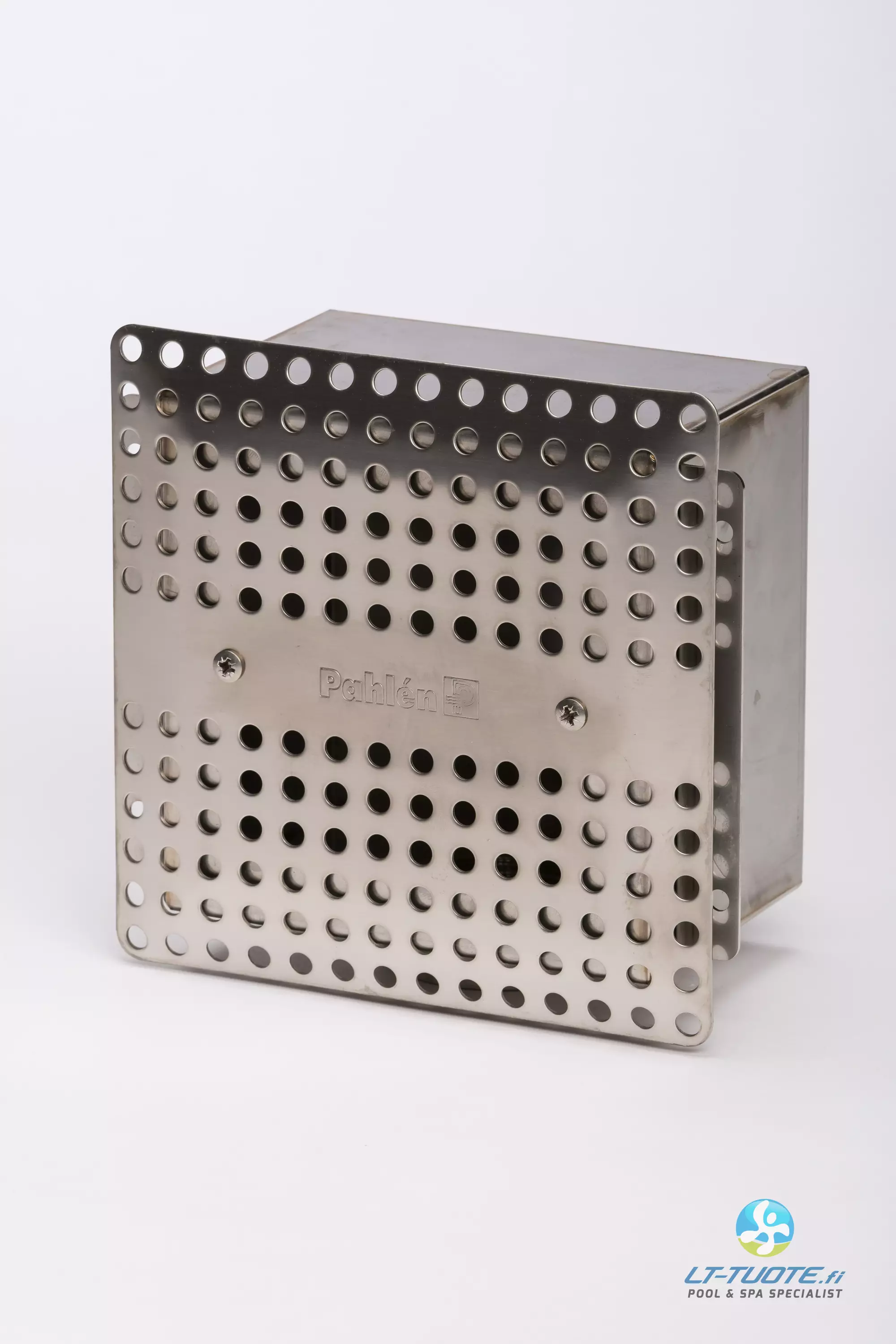 Haponkestävästä teräksestä (AISI-316L) valmistettu pohjakaivo uima-altaaseen.